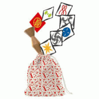 70 cartas, bolsa de almacenaxe, 1 totem de madeira e guía de xogo.